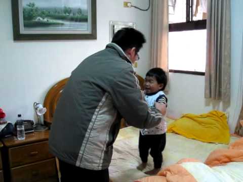 滿2歲時,他懂得"演戲" 有一天,他坐在床上,我輕輕推他一把,讓他躺在床上,他爬起來後,我又再推了一次,他倒下後對我笑了一笑,於是我這次又作勢要推他,但實際上並沒有碰到他,而他卻自己假裝被推而往後倒......因為興趣拍攝此影片的念頭 這應該可以解釋成有"同理心"的表現吧!真好奇兒童在何時發展出這種心理能力...記得之前探索頻道有此類似的實驗